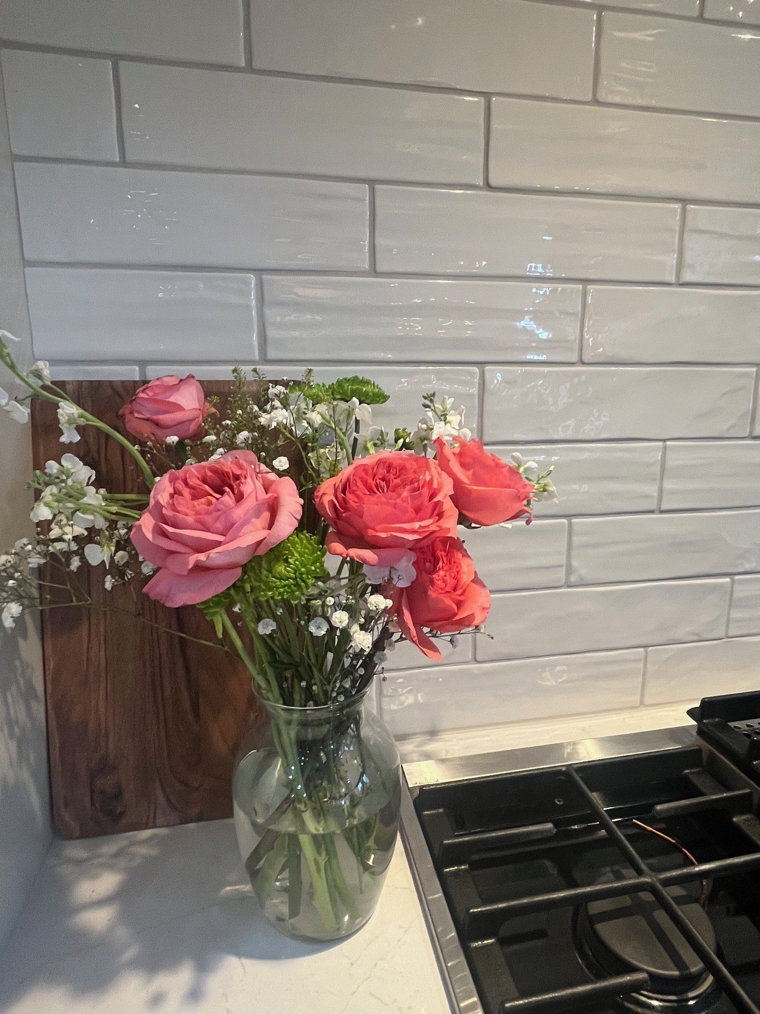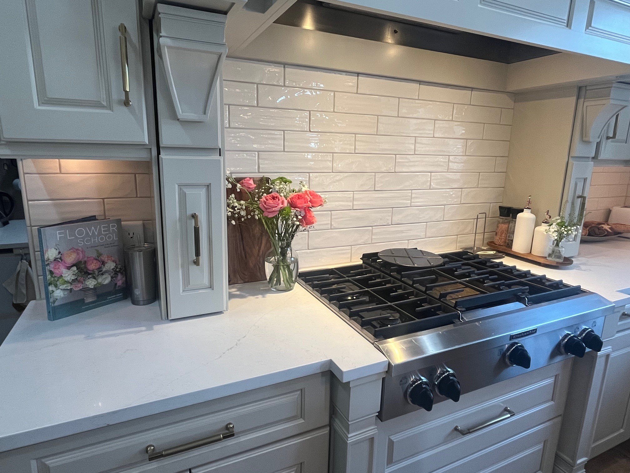 But I definitely didn’t want the splash to be boring. I love zellige-inspired, handcrafted artisan looks, so I chose an elongated 3×12 subway tile from Dal Tile. The color is Coconut in a gloss finish.